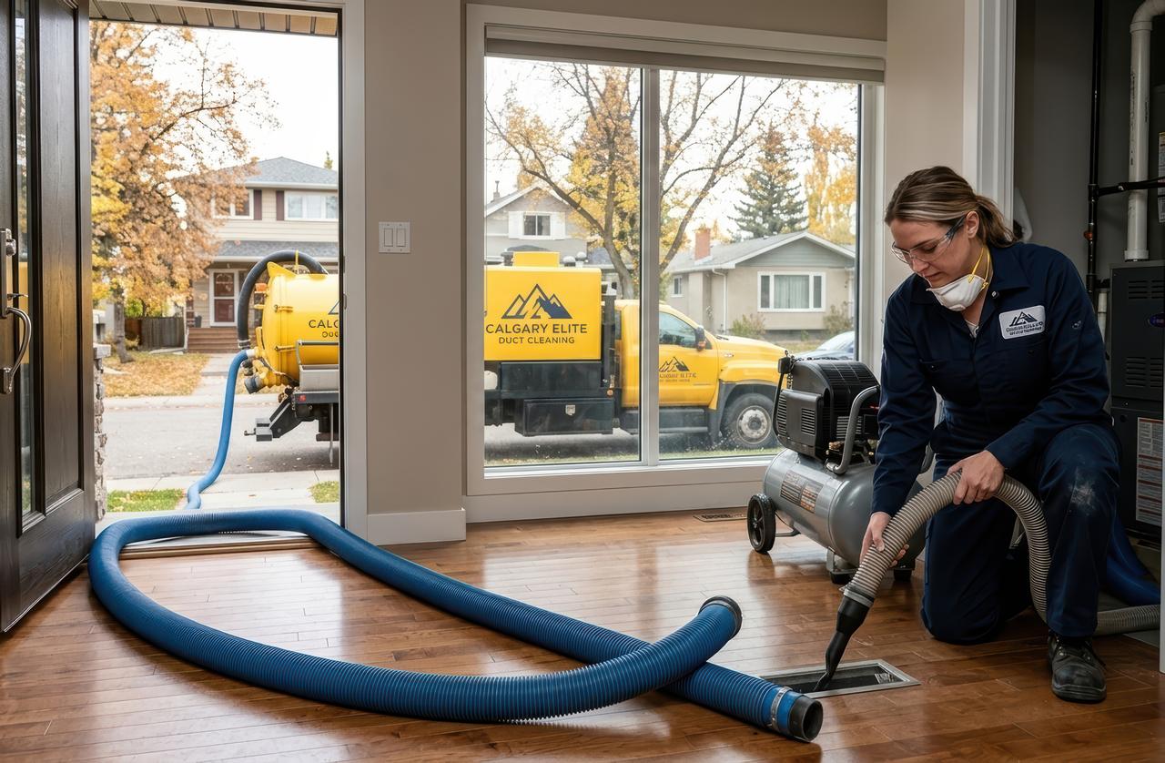 Duct cleaning can be booked at any time of year in Calgary. However, many homeowners choose the fall, around the same time as HVAC maintenance, so that the furnace is in the best possible condition to handle the icy months ahead. Once the extreme cold hits, most homeowners don’t want the heating off for too long or the doors open to accommodate the truckmount hoses often used in duct cleaning.