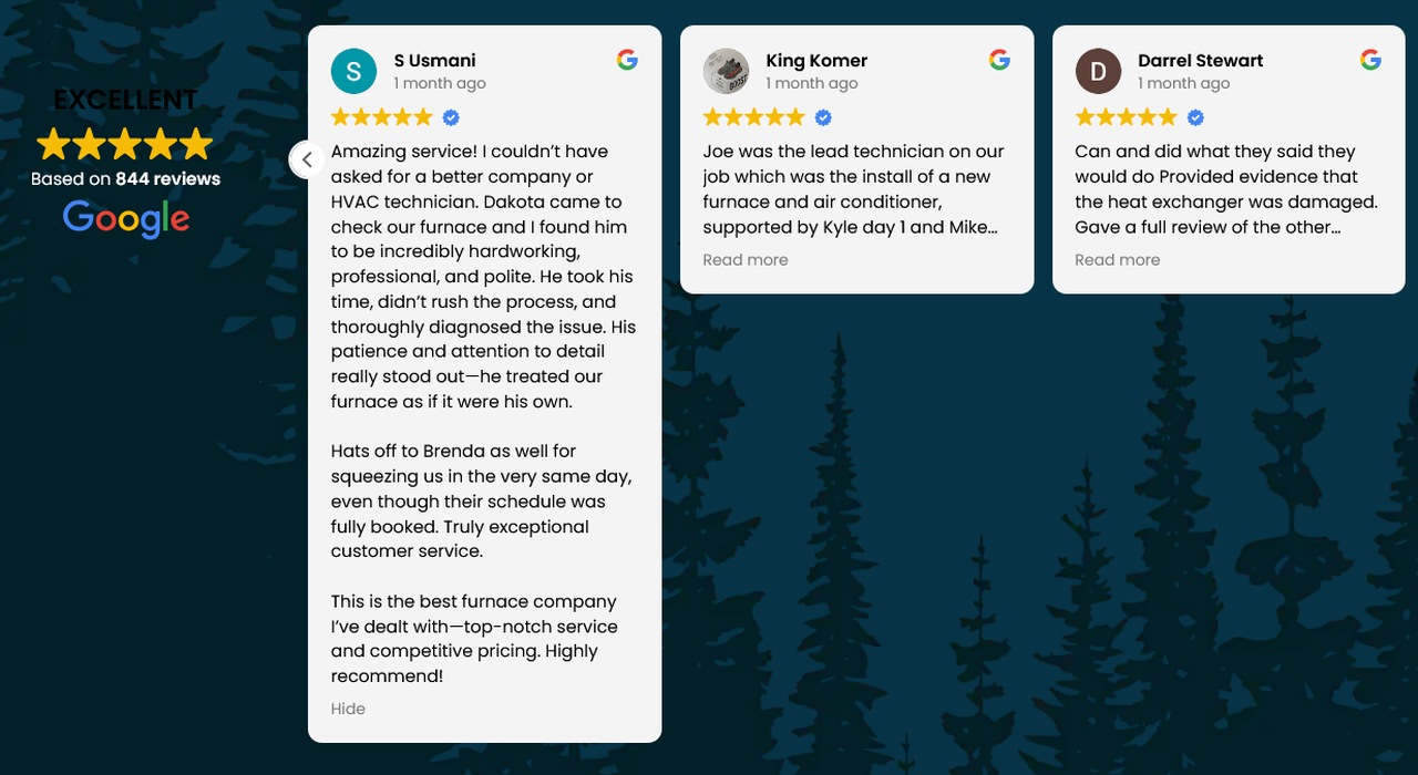 Ensure your HVAC professionals are licensed, insured, experienced with your furnace type, and have a great track record (it’s so easy to check online reviews these days).